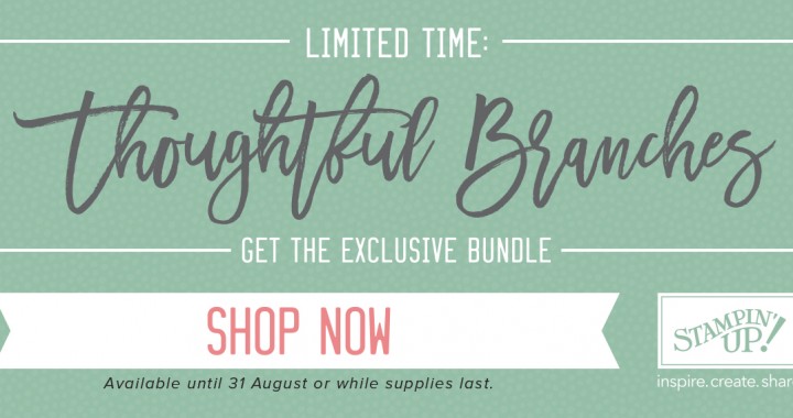 Not only do we have an exclusive stamp and die bundle for this month, you can also redeem your coupons that you earned last month. You can even put your coupons towards the cost of Thoughtful Branches!