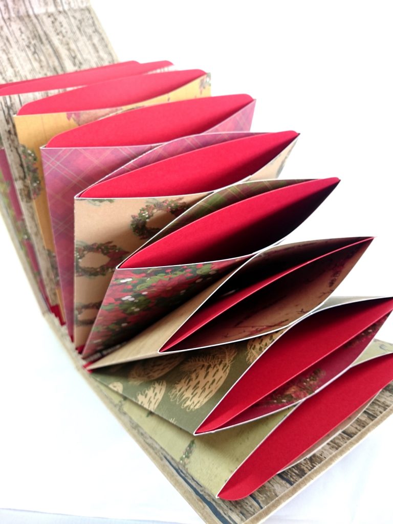 It’s day 4 of Christmas in July and I have something special for today’s project. I have taken inspiration from my mini album guru, Laura Dennison and created a beautiful accordion box . Her one was made from envelopes and mine is from patterned pockets.