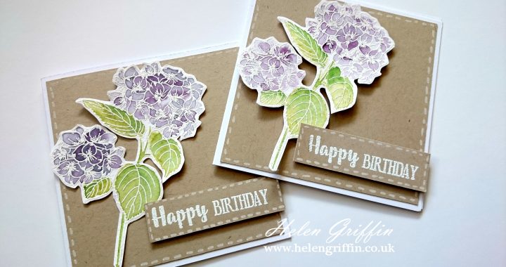 So, for day one I am starting with one of my favourite flowers – the hydrangea. The stamp set I used for this was a freeeeebie and came with Simply Cards & Papercraft Magazine 160 (details are down below). I love hydrangea stamps and I’m building up quite a collection! That makes me happy 🙂