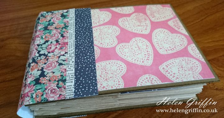 I haven’t provided instructions as everyone will have different sized paperbags – in the tutorial I show you how to measure and calculate the sizes you’ll need to make the front cover, binding and page matting. I have used the absolutely gorgeous papers from First Edition (Trimcraft) called Sweet Nothings.